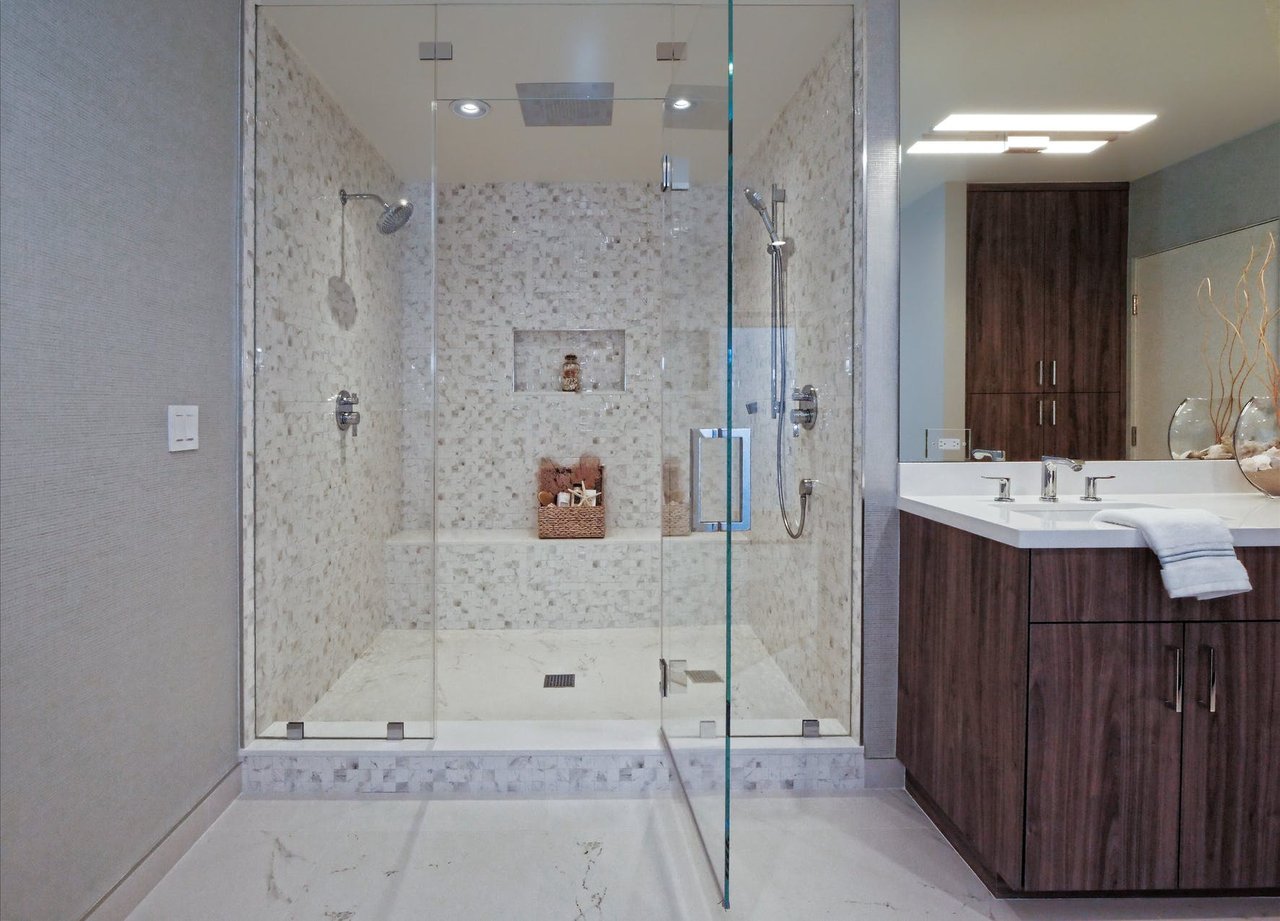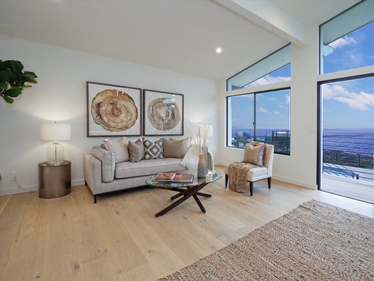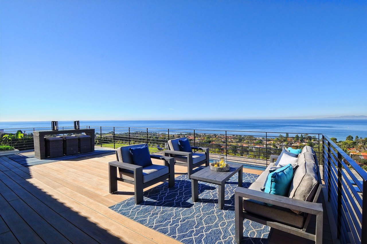 Prepare to be amazed as you walk over the perfectly set stone pavers that usher you up to the front double doors of this Newly Rebuilt Single Level Home, completed in November 2021. The moment that the Front Door opens, you are hit with a Jaw-Dropping sense of amazement at the astonishing, unobstructed, panoramic ocean views from nearly every room. You can hardly notice the new, luxury designed finishes as you are drawn passed the wide planked oak floors and through the Fleetwood glass sliding doors out to the expansive ocean view deck. The 750 SF wide planked polymer (waterproof) deck provides an unparalleled ocean viewing experience just off the main living area and serves as a patio cover for the poolside lounge below. The single level home is complemented by a VERY RARE 158 foot wide, 20,000 SF flat lot. One small set of stairs or a gently sloped pathway (also serves as a vendor access) brings you down to an expansive and private yard featuring a newly tiled and plastered pebble finished pool and spa. This space can accommodate nearly ANY outdoor activity and potentially a pool house or ADU if desired (utilities were brought down to the yard for this potential future use). No expense was spared to rebuild this modern luxury home, complete with 5 spacious bedrooms and 5 glamorous bathrooms. The open floorplan and vaulted ceilings cater to the wants and needs of today’s luxury buyer, and as added benefit to a homeowner of all ages, this home has NOT 1 STEP from the front curb all the way through to the back deck. The impressive, oversized Master Bedroom features a wall of glass looking out to the amazing ocean view. The en-suite Master Bathroom shimmers from the chic Philip Jeffries designer wallpaper and boasts a double vanity, contemporary soaking tub, an enormous shower with a recessed rain shower and two additional shower heads, and a private outdoor patio. Adjacent to the Master Suite you’ll find the “guest wing” with three garden-view bedrooms and two beautifully finished bathrooms. In the kitchen you will appreciate the built-in Fisher & Paykel refrigerator/freezer, seamlessly matching the custom, full overlay European-style cabinetry. Quartz countertops on the large center island flow into the entertainer’s living room and out to the outdoor dining area, including a stainless-steel BBQ set, all with clear sightlines out to the breathtaking ocean view. Three single car garage doors and a beautiful, oversized paver driveway greet you before you drive over the speckled epoxy-finished garage floor.