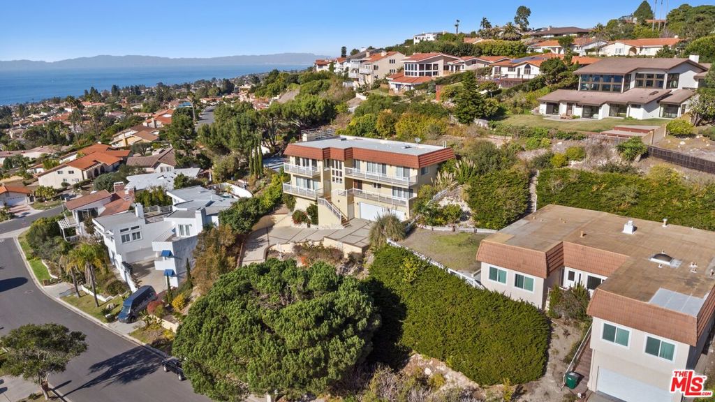 PRICE IMPROVEMENT!!! Experience breathtaking panoramic ocean views from this stunning multi-level Mediterranean home, nestled in the coveted Monaco neighborhood. With a thoughtfully designed floor plan ideal for entertaining, this home welcomes you with a foyer featuring rich hardwood floors. As you step inside, you're immediately greeted by a spacious living room where floor-to-ceiling windows and glass doors frame sweeping ocean views, filling the space with natural light and a sense of openness. Entertaining is a dream with over 100 linear feet of expansive balconies that offer unobstructed, 180-degree vistas stretching from Catalina Island to the renowned Terranea Resort and beyond. Whether hosting a gathering or simply relaxing, these outdoor spaces provide a perfect backdrop.The upper level features a serene master suite with its own private view of the ocean and Catalina Island. Three generously sized bedrooms and two full bathrooms complete the upper floor. The main level offers a large family room, a formal dining area, and a chef's kitchen, all designed for comfort and ease of living.Don't miss the opportunity to own one of the best homes in Rancho Palos Verdes, where luxury living meets spectacular views at every turn.